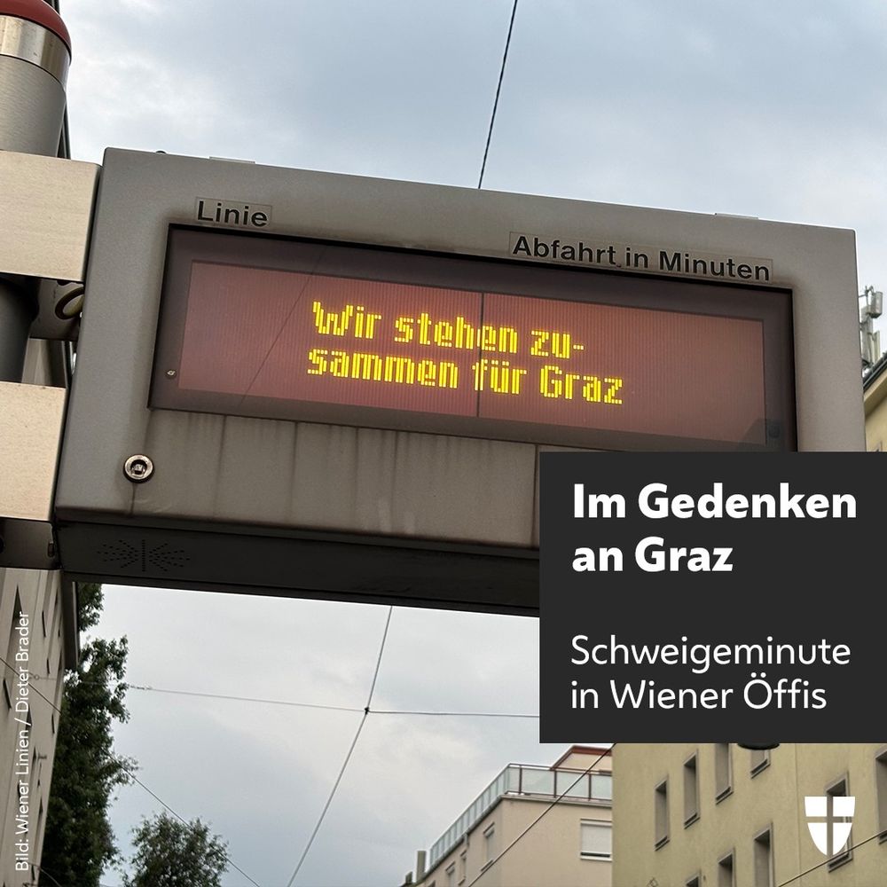 Die etwa 900 in Betrieb befindlichen Fahrzeuge der Wiener Linien sind um 10 Uhr für eine Minute stillgestanden, um den Opfern des gestrigen Amoklaufs in Graz zu gedenken.