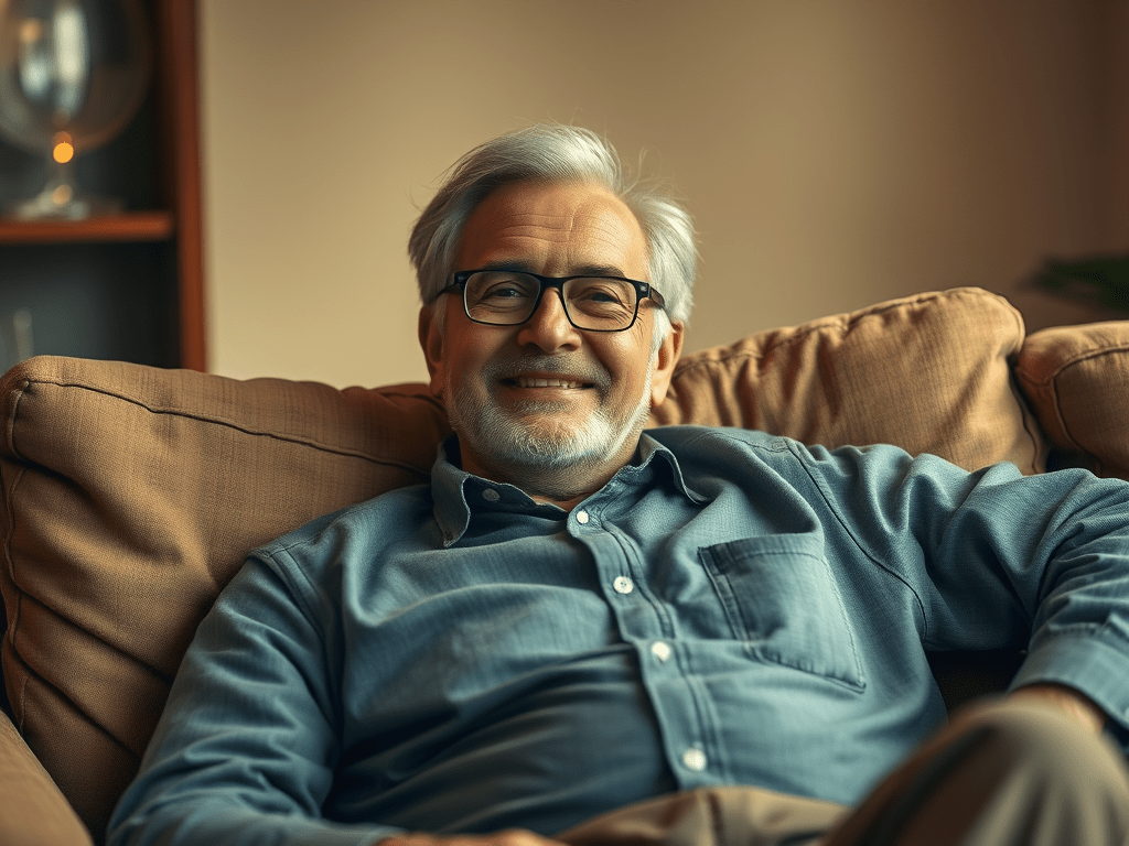 Ein Mann, der mit stoischer Ruhe auf der Couch thront, den Puls eines Faultiers hat und trotzdem die innere Überzeugung ausstrahlt: „Ich könnte jederzeit loslegen – aber warum sollte ich?“