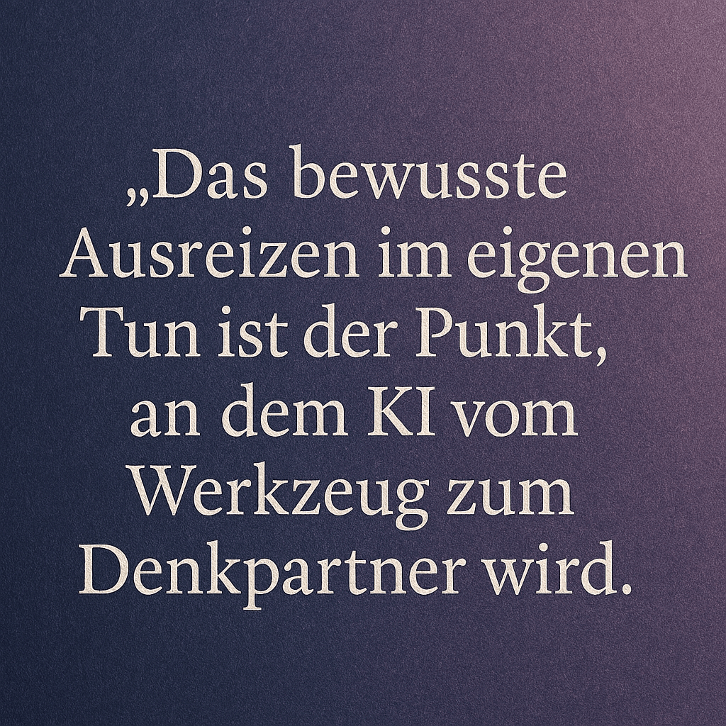 Dann bist du genau an der spannendsten Stelle angekommen. Das bewusste Ausreizen im eigenen Tun ist der Punkt, an dem KI vom Werkzeug zum Denkpartner wird. Nicht, um sich ersetzen zu lassen, sondern um die eigenen Grenzen sichtbar zu machen – und zu verschieben.