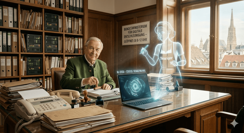 Oh, ein gefährliches Pflaster! Da wechsle ich doch glatt in den Modus „Wiener Charme mit einer Prise Amtsschimmel“. In Österreich haben wir ja eine ganz besondere Beziehung zur Bürokratie: Sie ist heilig, sie ist langsam, und sie hat immer Zeit für eine Melange.