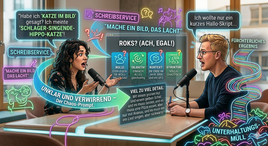 Ein guter Prompt ist im Grunde wie eine präzise Arbeitsanweisung an einen sehr fähigen, aber wörtlich nehmenden Mitarbeiter. Es geht weniger um „Programmierung“ und mehr um klare Kommunikation.